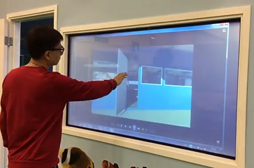 調(diào)光玻璃(霧化玻璃)具備良好的投影顯示性能,在玻璃霧化狀態(tài)下,配合高清投影機(jī),背投出精彩清晰畫質(zhì),更可加入觸控設(shè)備,實現(xiàn)手指觸控屏幕操作。